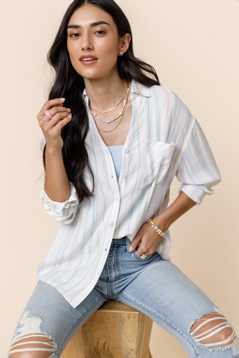 Multi Color Striped Button Down Top
