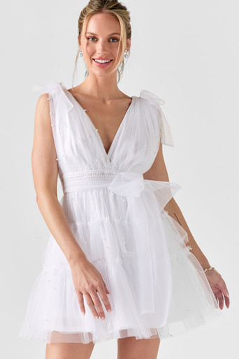 Pearl Clip Dot Bow Waist Mini Dress