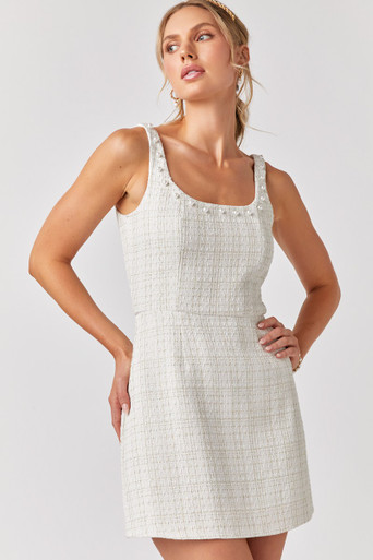 Pearl Neck Line Tweed Mini Dress