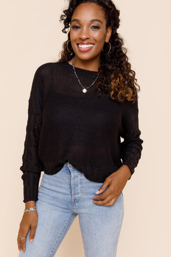 Pointelle Sleeve Pullover Sweater