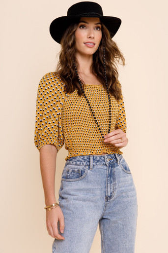 Puff Sleeve Dot Smocked Top